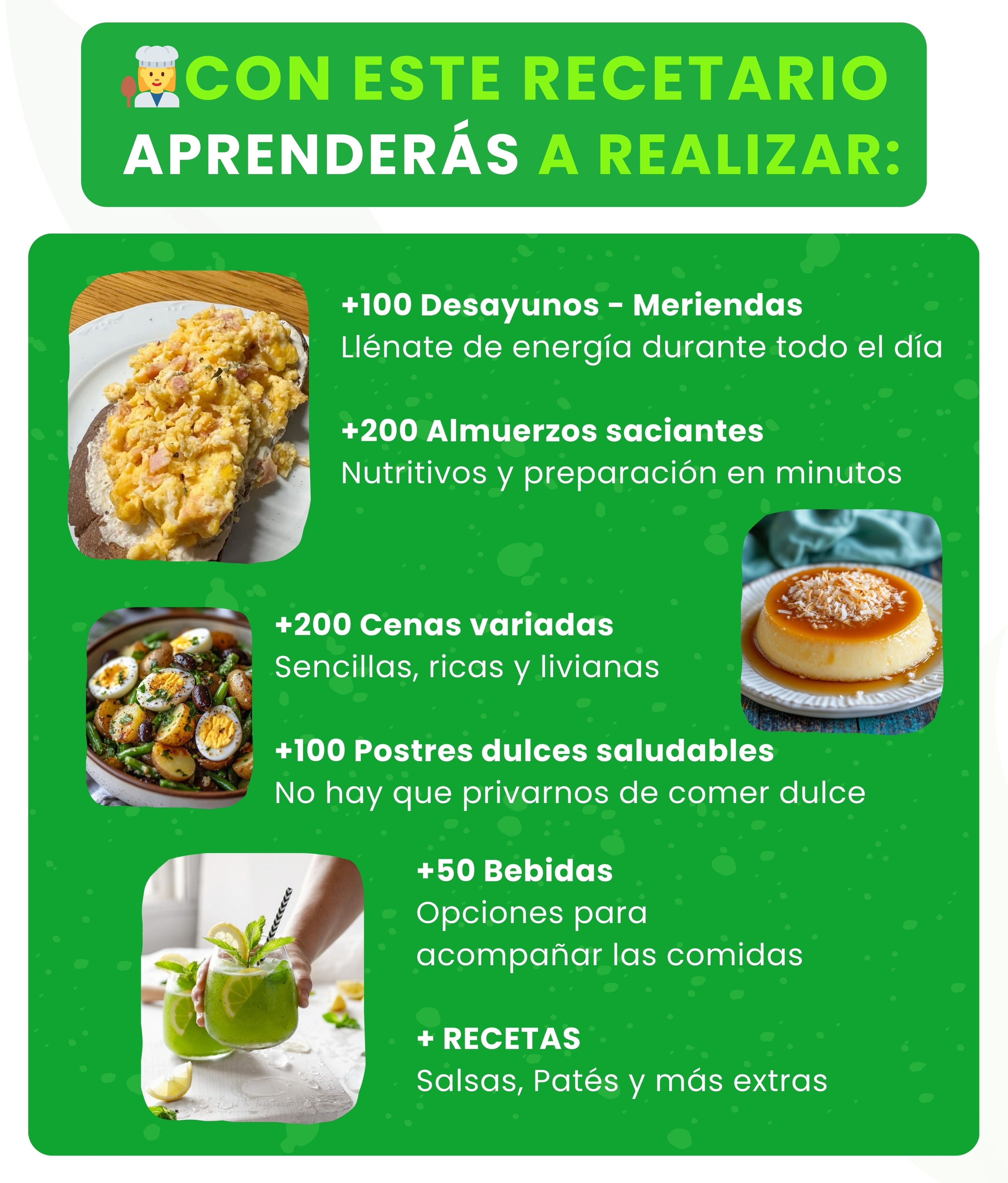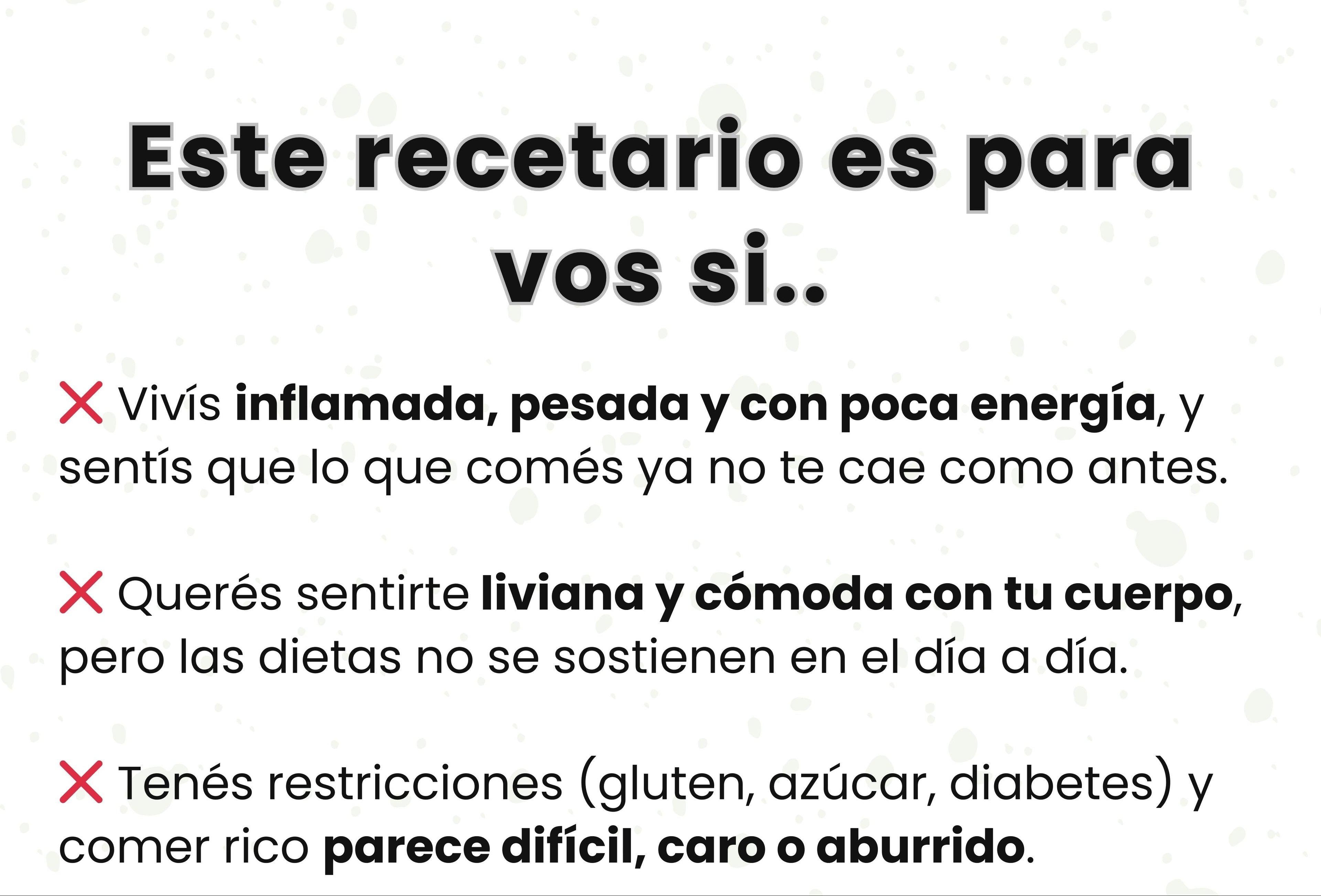 Porque este libro te ahorra tiempo, errores y frustraciones. En lugar de perderte entre recetas sueltas o poco claras, tenés todo en un solo lugar: organizado, probado, con resultados que funcionan desde el principio y pensados para ayudarte a comer mejor.